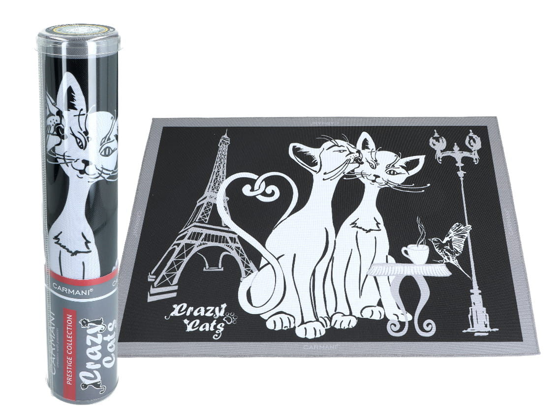 Carmani Podkładka Na Stół / Pod Miski, Koty w Paryżu, Czarne Tło, 29,5x40 cm, NOWOŚĆ!