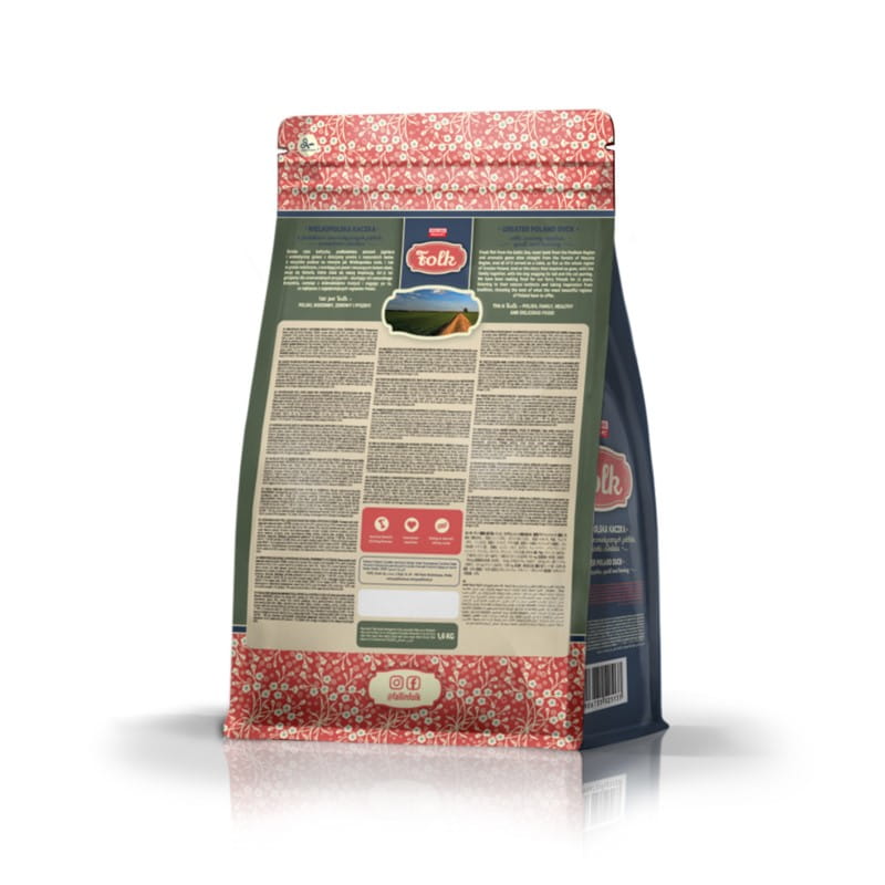 FOLK Adult Wielkopolska Kaczka z Dodatkiem Aromatycznych Jabłek, Przepiórki i Śledzia, 1,6 kg, Karma Wyprodukowana w Polsce!
