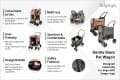 Dzięki możliwości zdemontowania całej materiałowej zabudowy bez trudu utrzymasz jego czystość. Model jest maksymalnie praktyczny i wygodny. Posiada 6 kółek, w tym cztery przednie obrotowe pozwalające na manewry nawet w trudnych warunkach. Skórzana, regulowana rączka jednocześnie ułatwia i umila prowadzenie psiego pojazdu. Wejścia zaprojektowane tak, aby psiak miał możliwość obserwacji świata i mógł swobodnie wyglądać przez górny otwór.