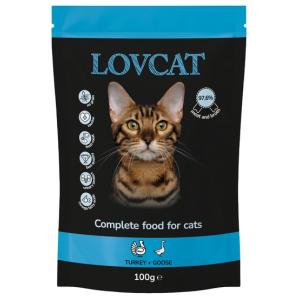 LOVCAT Indyk z Gęsią Saszetka 100g , Bardzo Duża Dawka Tauryny! Dodatek DL-Metioniny Zakwaszającej Mocz!