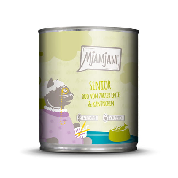 MjAMjAM SENIOR DUO Delikatna Kaczka i Królik z Dodatkiem Małży Zielonowargiej 800g! Cykoria Dla Zdrowych Jelit! Nowość!