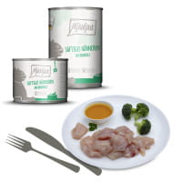 Twój kot szaleje za MjAMjAM? Wtedy jeszcze bardziej pokocha naszą kreację z soczystym kurczakiem i brokułami! Ten przysmak jest również całkowicie pozbawiony zbóż i przekonuje wyjątkowo wysoką zawartością mięsa. Tylko to, co najlepsze dla Twojej ukochanej.