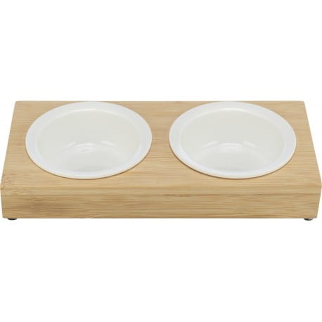 Trixie Dwie Miski Ceramiczne Białe Na Stojaku Bambusowym, 2x 0,25l/12 cm, Nowość!