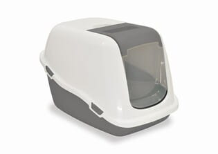 Yarro toaleta dla kotów Ella Comfort z filtrem i podnoszoną górą, biało-szara, 57x39x41 (ostatni wymiar to wysokość) cm.
