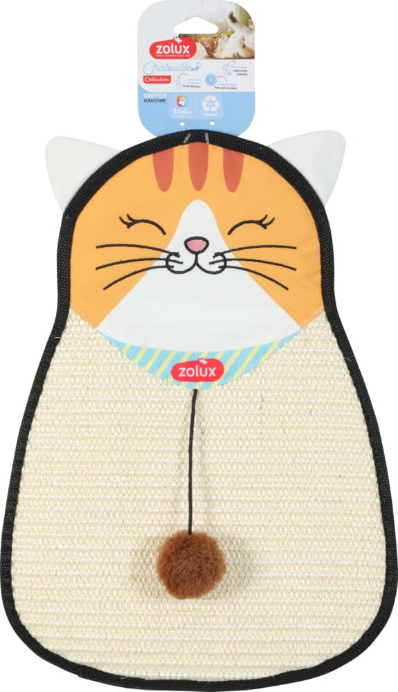 Drapka dla kota Chatouille w kształcie kota to wielofunkcyjne akcesorium z nowej gamy ZOLUX o długości 54 cm, które łączy funkcję drapaka sizalowego z interaktywną zabawką. Wykonana z wysokiej jakości sizalu drapka w oryginalnym kształcie kota może być zawieszona na drzwiach, ścianie lub położona na podłodze, oferując kotom naturalną powierzchnię do drapania oraz dodatkową stymulację poprzez dołączoną zabawkę na sznurku.