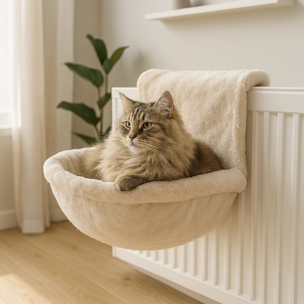 Hamak jest bardzo prosty w instalacji. Wystarczy zamocować go na standardowym kaloryferze, aby stworzyć dla kota wygodne i ciepłe miejsce do leżenia. Dzięki solidnej konstrukcji produkt zapewnia stabilność i bezpieczeństwo podczas użytkowania. Należy jednak pamiętać, że nie jest on odpowiedni do stosowania na grzejnikach elektrycznych. - Higieniczny i łatwy w czyszczeniu: