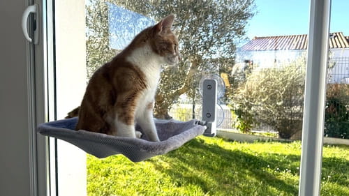 Hamak RIO oferuje dwie różne powierzchnie użytkowe. Jedna ze stron jest wykończona miękkim, syntetycznym futrem zapewniającym kotu ciepło i wygodę w chłodniejsze dni. Druga strona z przewiewnej siateczki to idealne rozwiązanie na cieplejsze miesiące, zapewniające odpowiednią wentylację i komfort. - Bezpieczne mocowanie na oknie:
